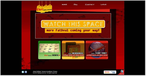 Fatdeal is an event website that is selling tickets online. Coming soon is merchandize and flight tickets