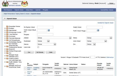 E-Aduan System is a part of services in their official website that purposely to provide platform for user/ citizen to express their complaint toward Council. This system is able to manage all ticket complaint from complainant and will actively take action by specified department.
